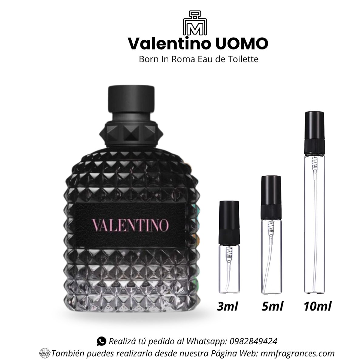 Valentino Uomo Born in Roma de Valentino es una fragancia de la familia olfativa Amaderada Especiada para Hombres. Valentino Uomo Born in Roma se lanzó en 2019. Valentino Uomo Born in Roma fue creada por Antoine Maisondieu y Guillaume Flavigny. Las Notas de Salida son Notas minerales, hojas de violeta y sal; las Notas de Corazón son jengibre y salvia; las Notas de Fondo son notas amaderadas y vetiver.